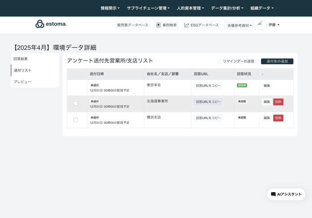 送付リストから回答URLをコピーを選択。