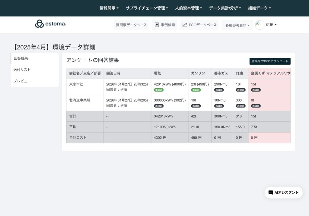 サイドカテゴリのESGデータ集計アンケート > アンケートタイトル を選択。